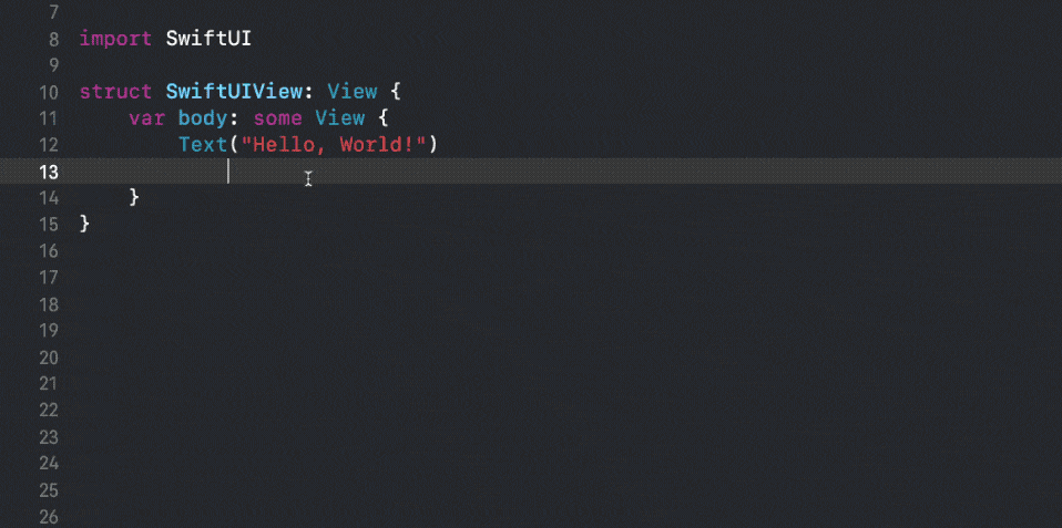 虽然 Xcode 14 已经开始支持使用模糊搜索来选择参数,但是这种方式对于具有许多名称但参数相似(例如框架修饰符)的方法来说,用起来又麻烦又容易出错,反正我很少用,参考下方示意图: